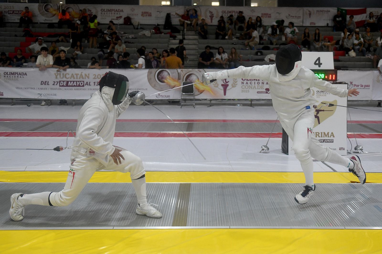 MÉRIDA, Yucatán | 21 de junio de 2025.- Con una destacada actuación en las pruebas individuales, la delegación juvenil de esgrima inició su participación con fuerza en el primer día de competencias del calendario nacional. Las emociones arrancaron con las finales de espada, sable y florete en la categoría Juvenil (18-20 años), correspondientes a los nacidos entre 2005 y 2007.