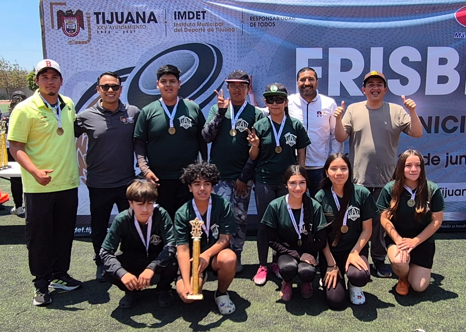 Tijuana, Baja California, a 28 de junio de 2025.- Con el objetivo de fomentar la activación física, la convivencia y el trabajo en equipo entre la niñez y juventud tijuanense, el Gobierno del presidente municipal Ismael Burgueño Ruiz, a través de la Secretaría de Bienestar y el Instituto Municipal del Deporte de Tijuana (IMDET), llevó a cabo el Municipal de Frisbee 2025 en las instalaciones de la Unidad Deportiva Tijuana.