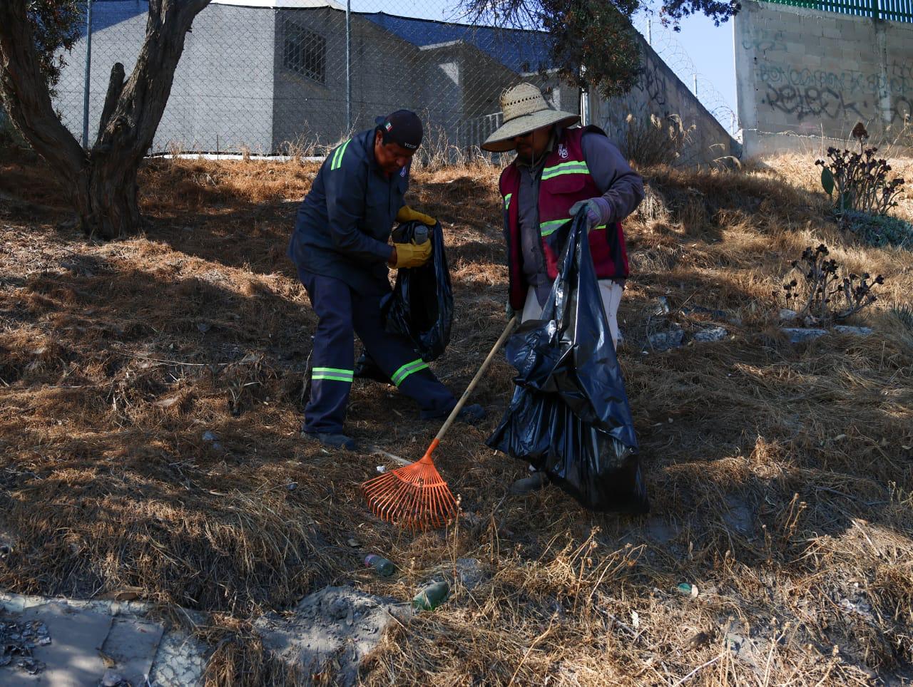 Más tarde, en la colonia Presidentes, de la Delegación Cerro Colorado, personal de la Secretaría de Desarrollo Territorial, Urbano y Ambiental (SDTUA), en coordinación con residentes de la zona, realizó labores de limpieza en talud, abarcando un área de 720 metros cuadrados, con retiro de basura, escombro y maleza.