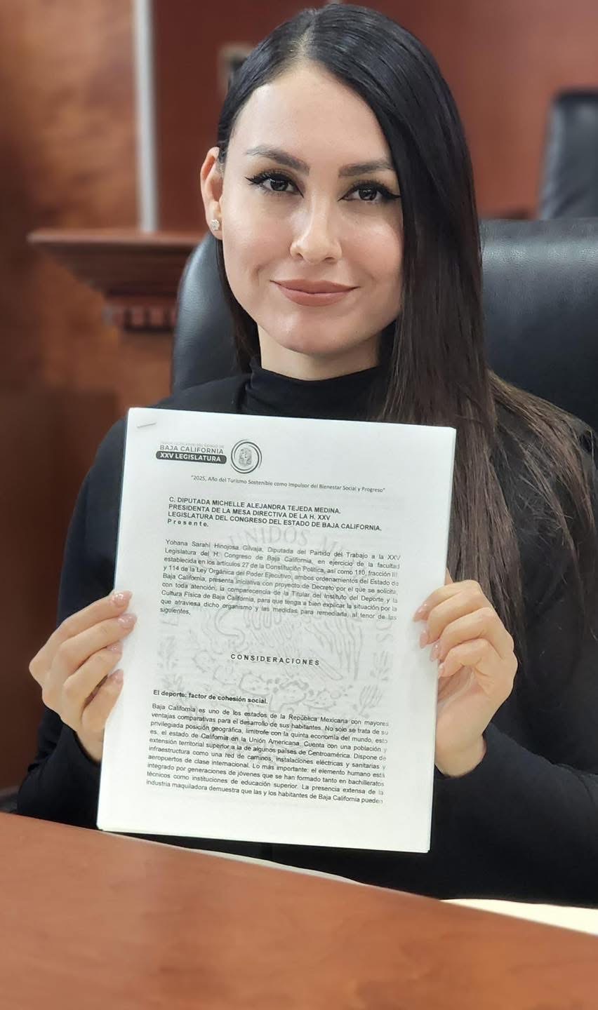 Mexicali, Baja California, viernes 4 de julio de 2025.- En un enérgico pronunciamiento ante el Congreso del Estado, la diputada Yohana Sarahí Hinojosa Gilvaja denunció el grave abandono en el que se encuentra la infraestructura deportiva de Baja California, señalando directamente al gobierno estatal y al Instituto del Deporte y la Cultura Física de Baja California (INDE) por su negligencia e inacción.