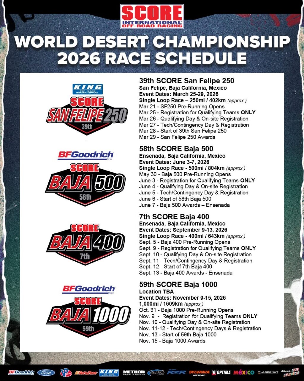 El camino hacia el 2026 comienza ahora. Echa un vistazo a la programación completa y los detalles en score-international.com – ¡nos vemos en Baja!