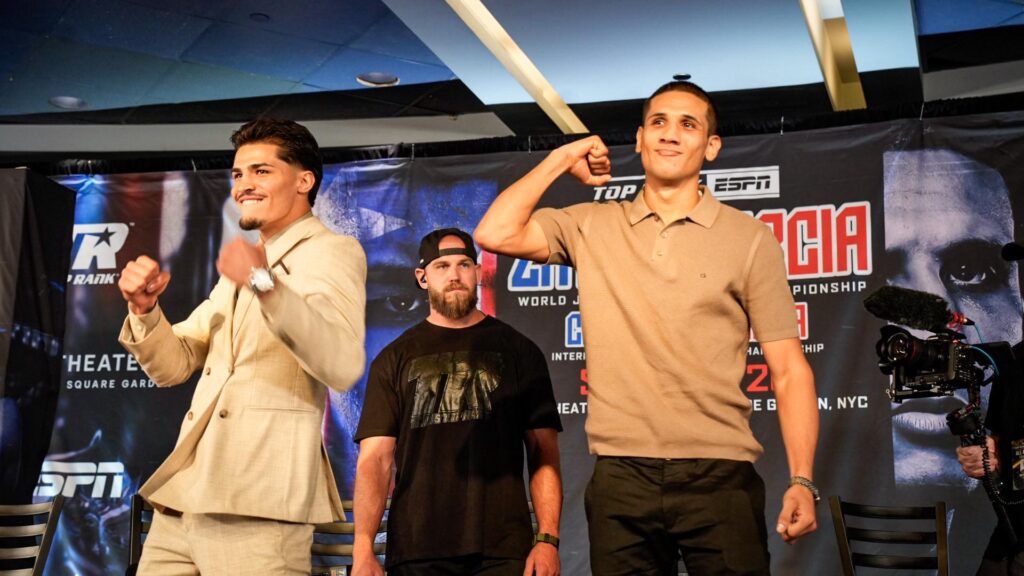 Nueva York.- En el icónico teatro del Madison Square Garden, se llevó a cabo este jueves la conferencia de prensa oficial de la esperada pelea entre el puertorriqueño Xander Zayas (21-0, 13 KO) y el mexicano Jorge García Pérez (33-4, 26 KO), quienes disputarán este sábado 26 de julio el título mundial vacante del peso superwelter de la Organización Mundial de Boxeo (OMB). El evento, organizado por Top Rank y transmitido por ESPN y ESPN+, promete ser una batalla entre dos estilos contrastantes y con mucho en juego para ambas naciones.
