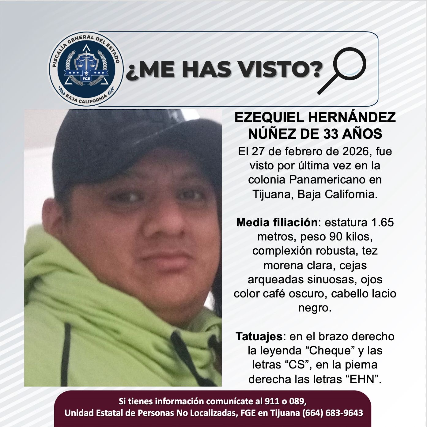 Si tienes cualquier información, llama al (664) 683-9643.