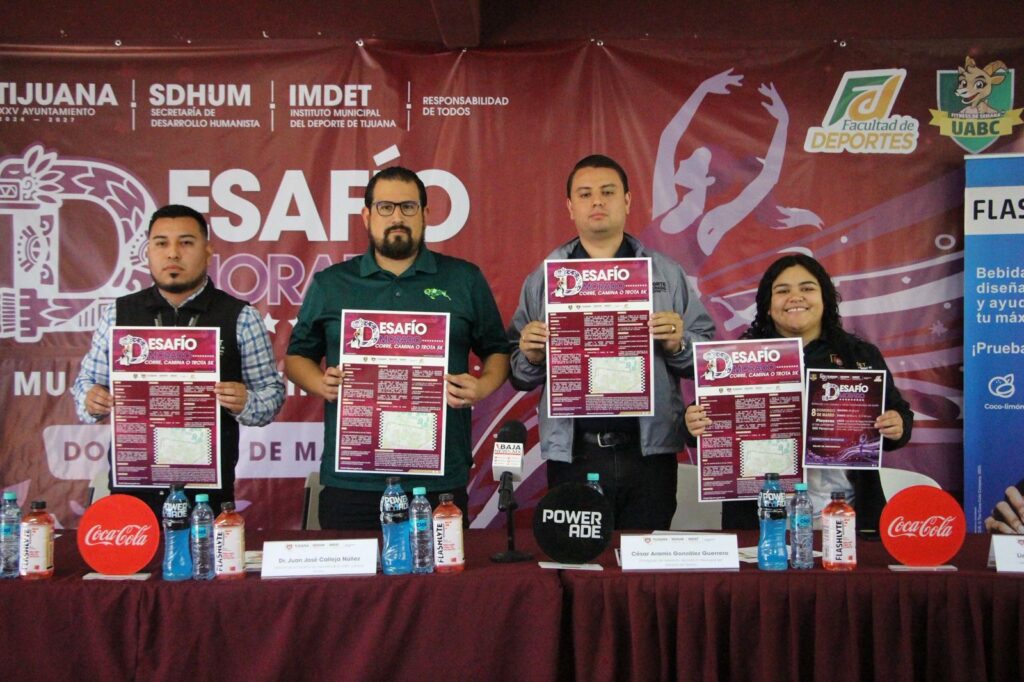 Tijuana, Baja California, 3 de marzo de 2026. El XXV Ayuntamiento de Tijuana presentó el evento Desafío Morado 2026: Corre, Camina, Trota y Mujer en Movimiento, en el marco del Día Internacional de la Mujer.